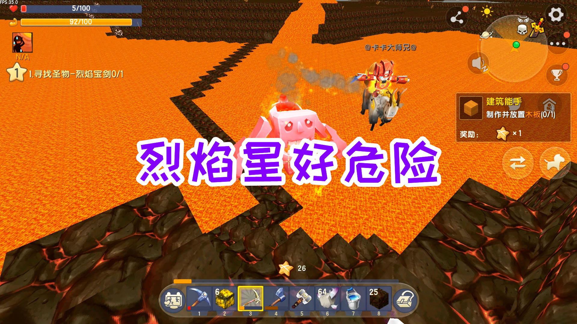 迷你世界双人生存21:烈焰星好危险,大师兄召唤出火麒麟走岩浆