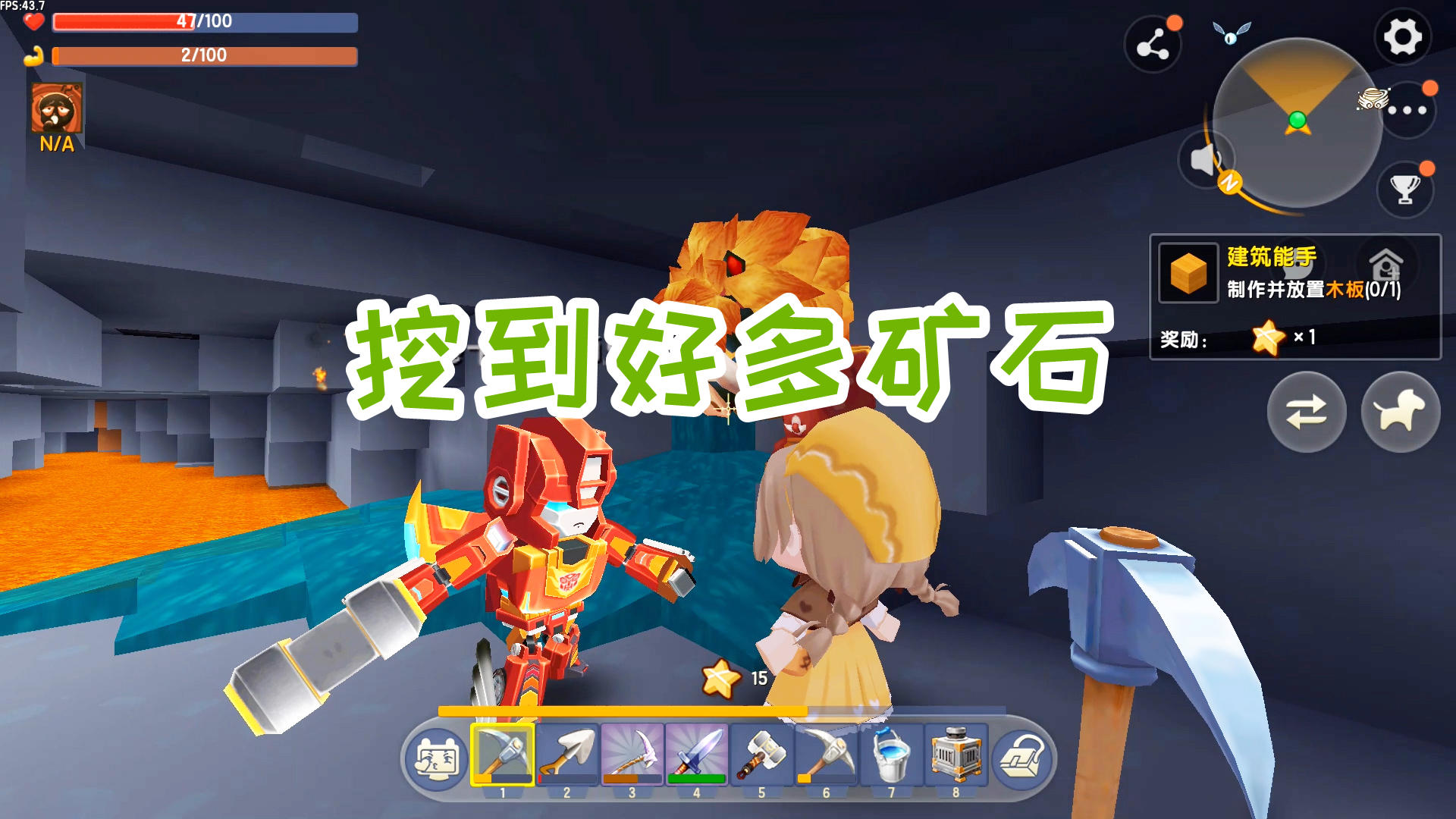 迷你世界双人生存2:矿洞里看怪物跳广场舞,不小心掉进岩浆池