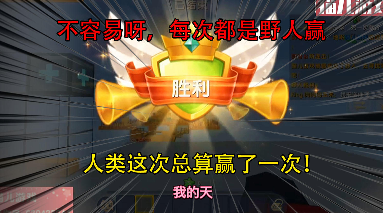 迷你世界:不容易呀,每次都是野人赢,人类这次总算赢了一次!