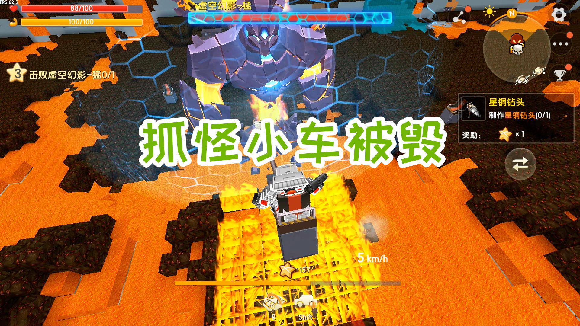 迷你世界:探索新世界138,抓怪小车被摧毁到只剩下座位和液压臂