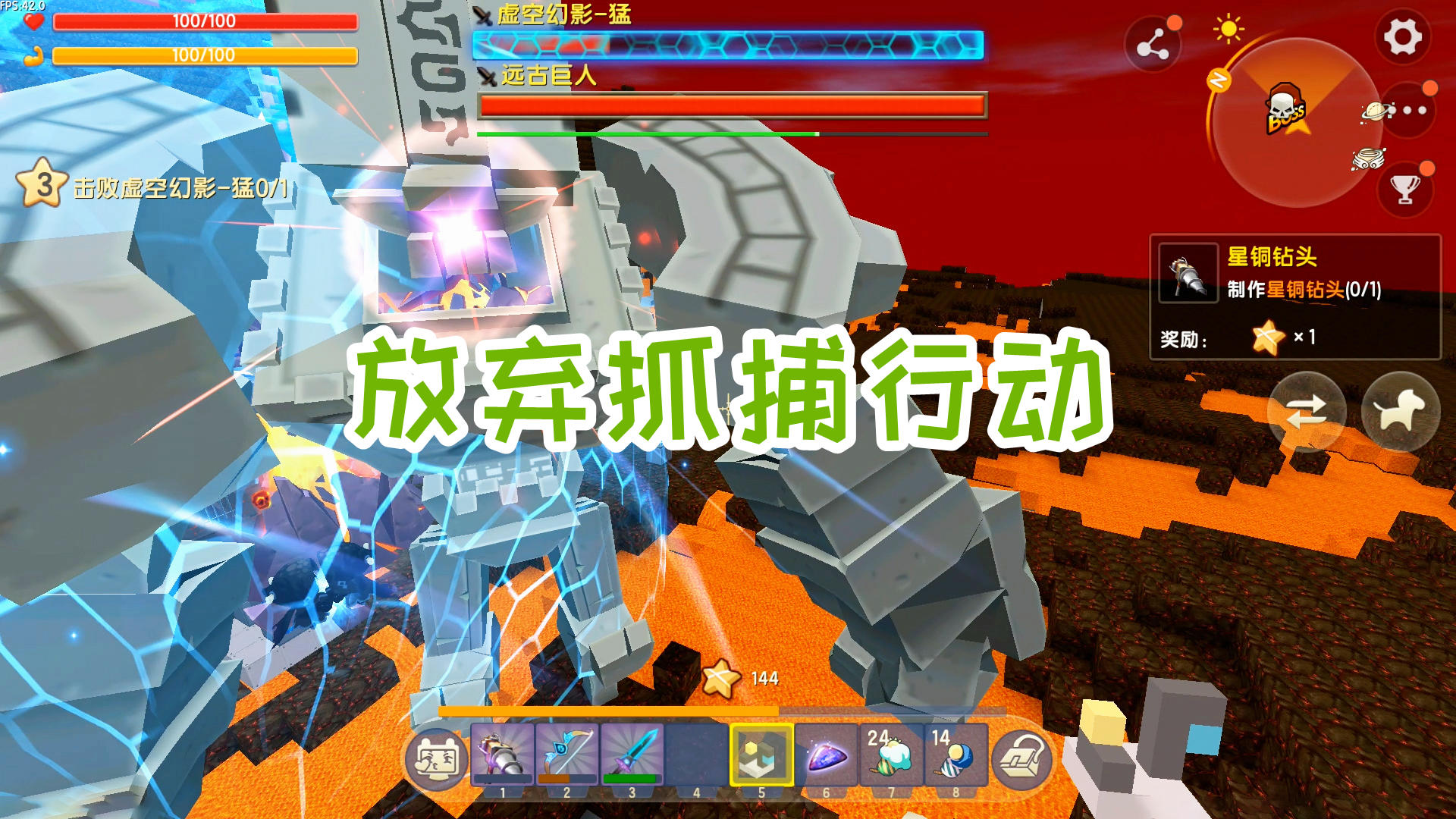 迷你世界:探索新世界140,放弃抓捕行动,使用能量剑硬钢怪物