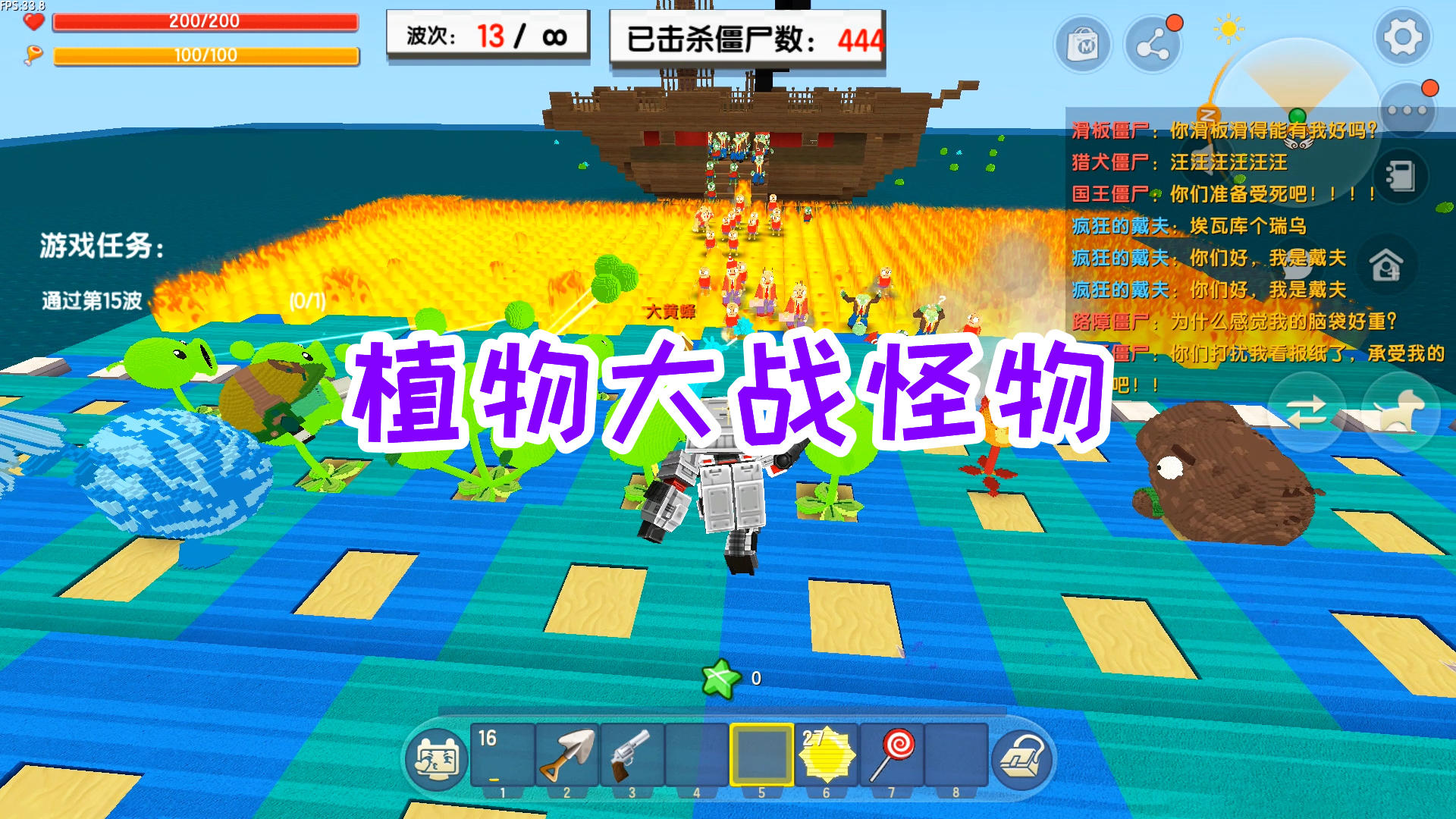 迷你世界:植物大战怪物,加农炮很厉害,利用超级樱桃火烧海盗船