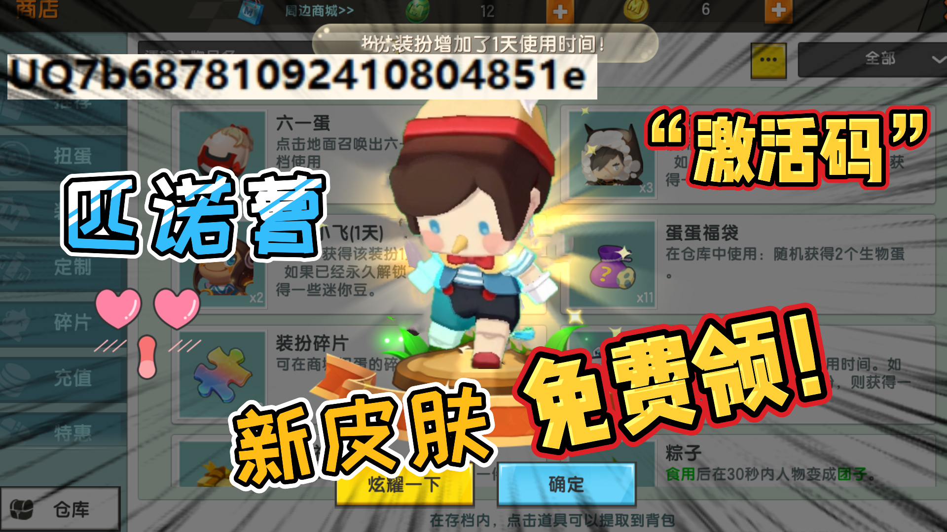 迷你世界:新皮肤“匹诺曹”好丑!有可能免费?激活码大家都能用