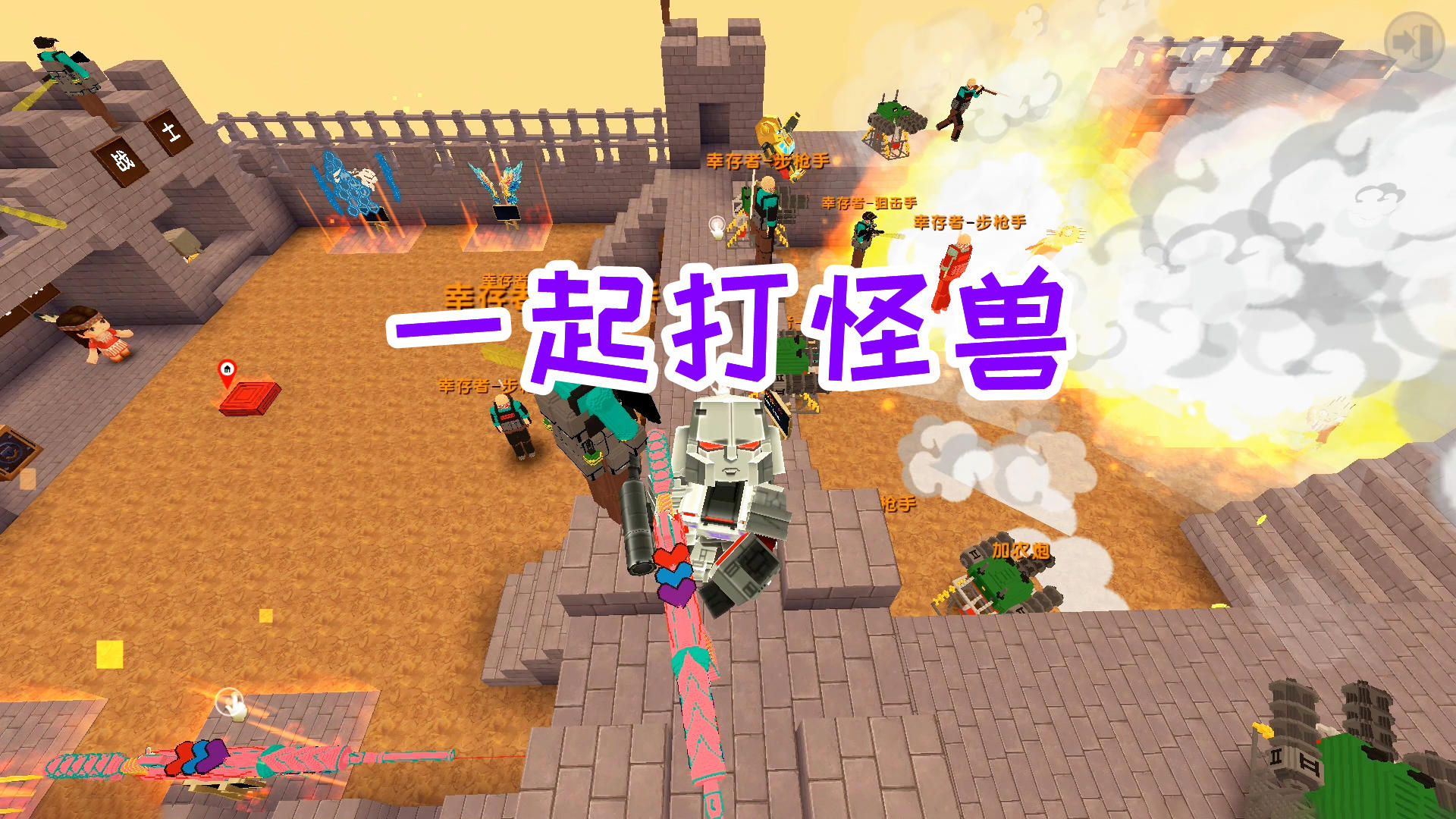 迷你世界:威震天和大黄蜂一起打怪兽,加农炮很厉害,但敌我不分
