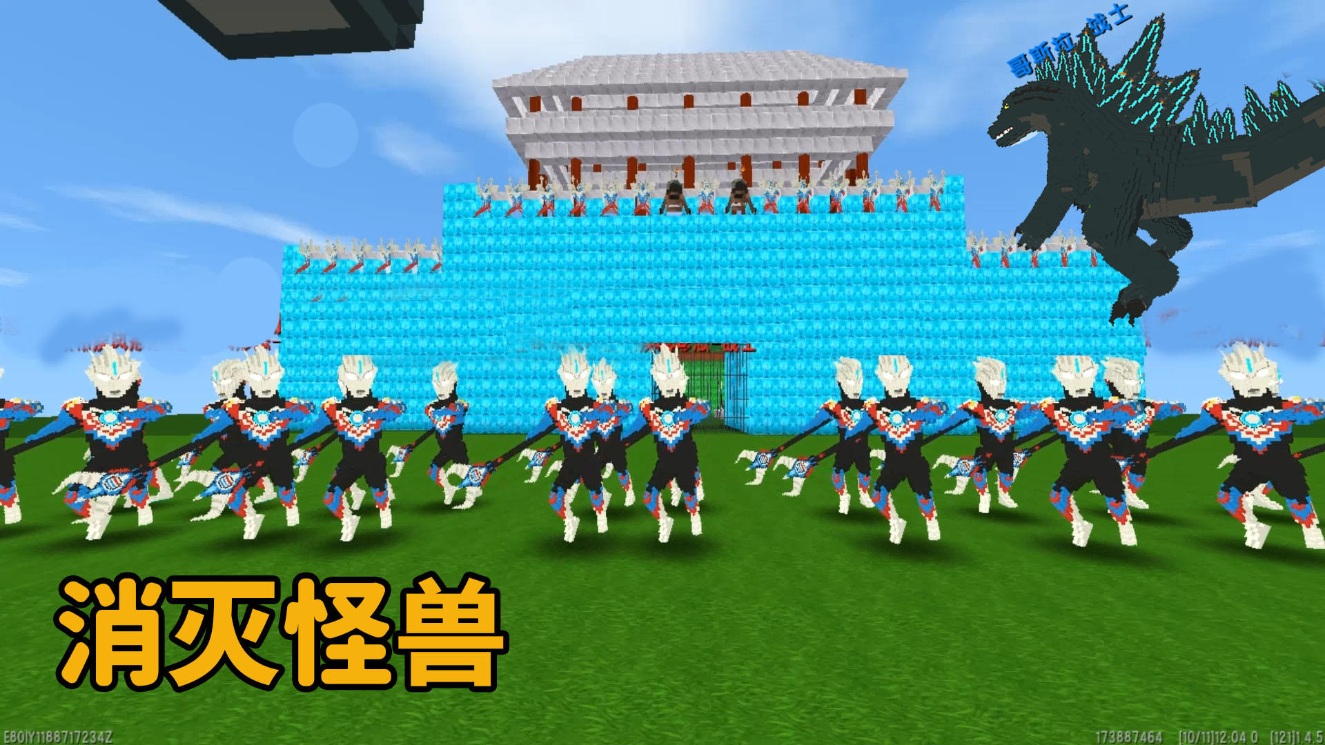 迷你世界:消灭受伤的贝利亚 先用欧布奥特曼大军打败哥斯拉
