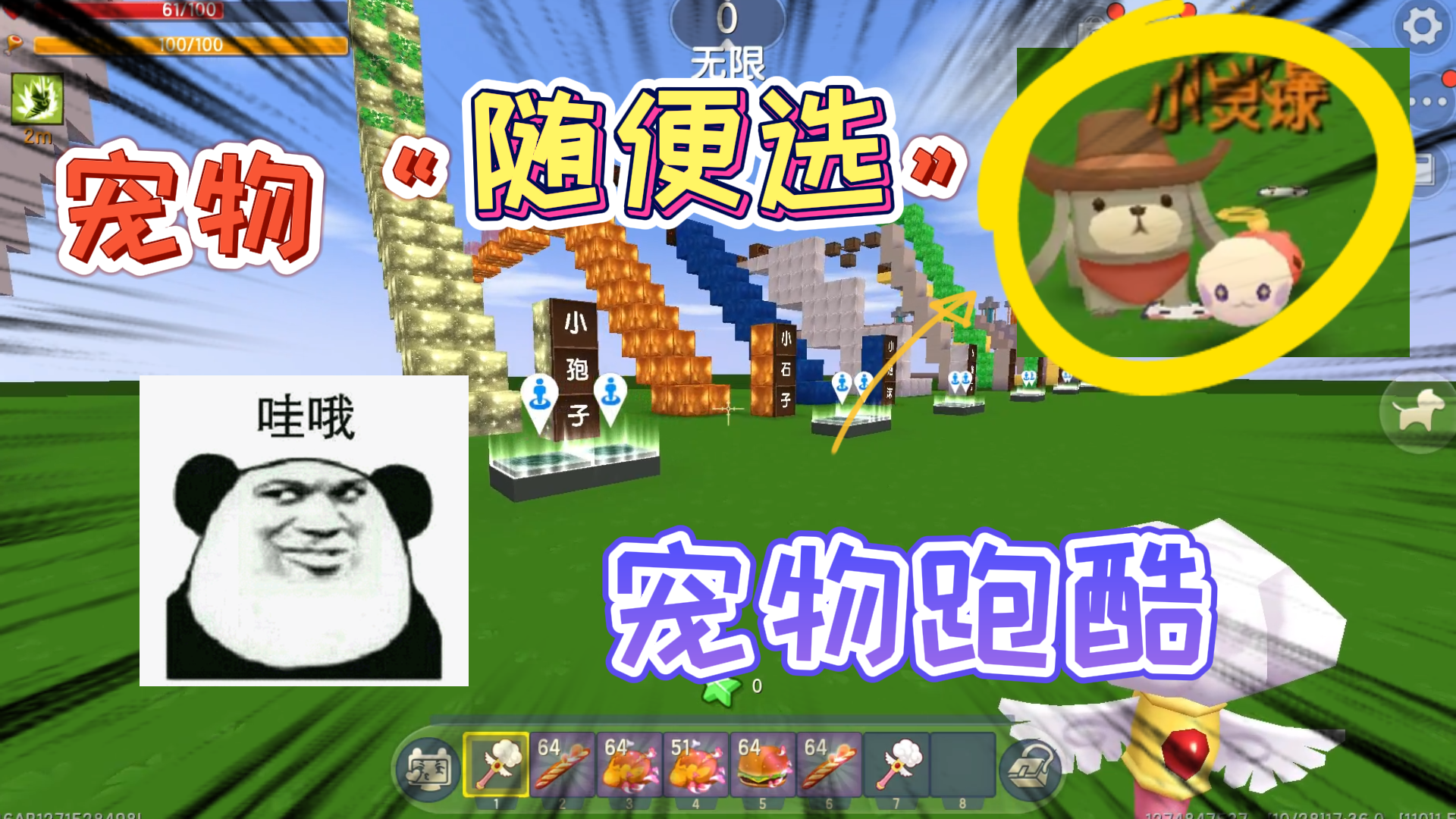 迷你世界:宠物跑酷,过一关领一个宠物,我身后的宠物快跟不下了