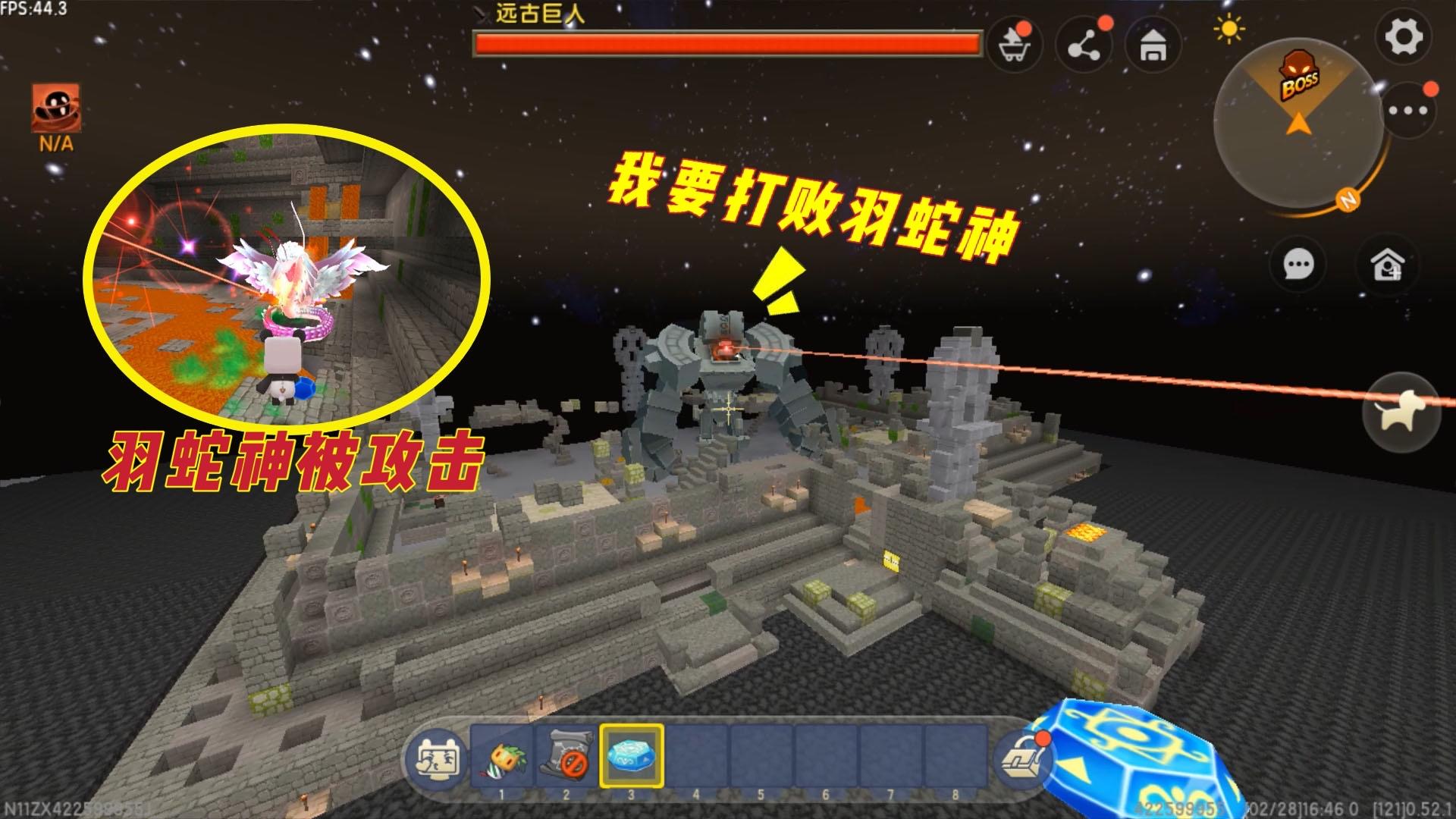 迷你世界:使用太空巨人的激光,能不能秒杀羽蛇神呢?