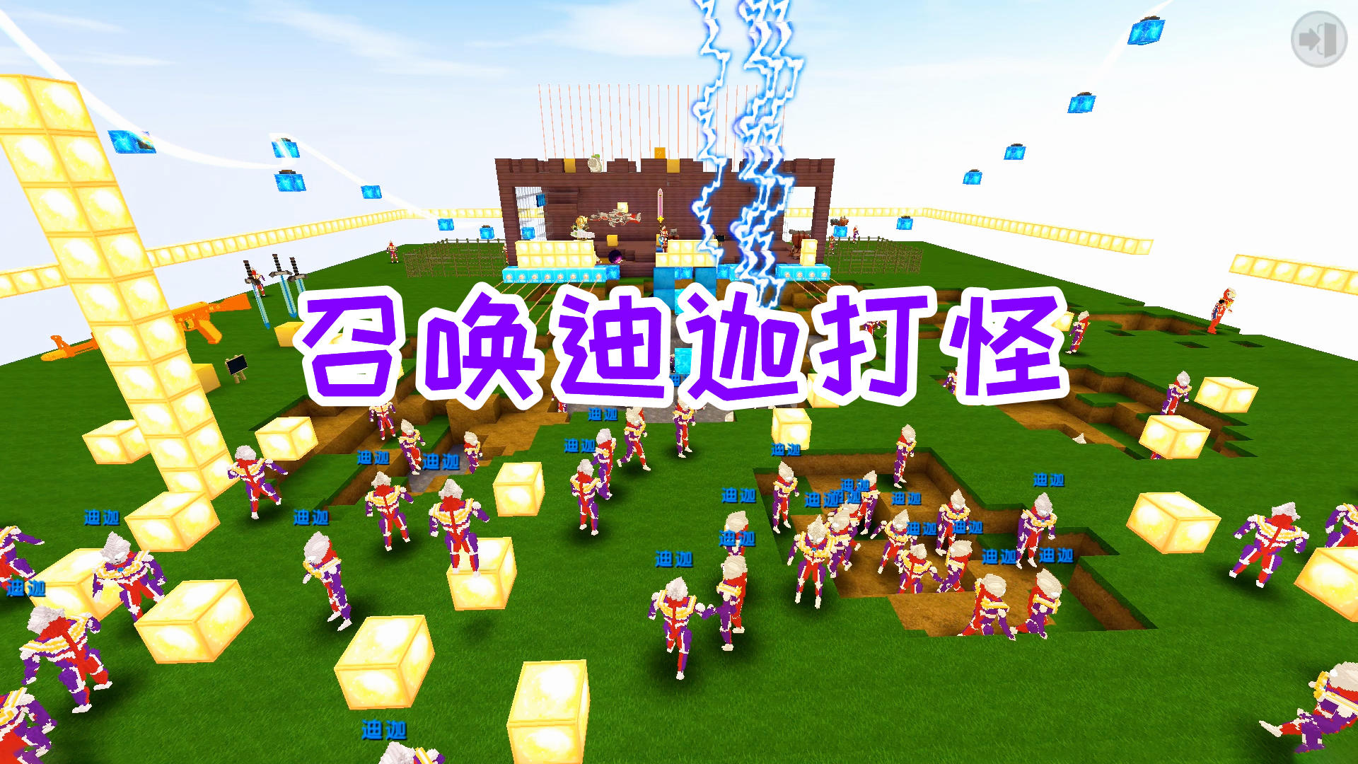 迷你世界:召唤出无数的迪迦奥特曼打怪物,雷神加特林超级解压