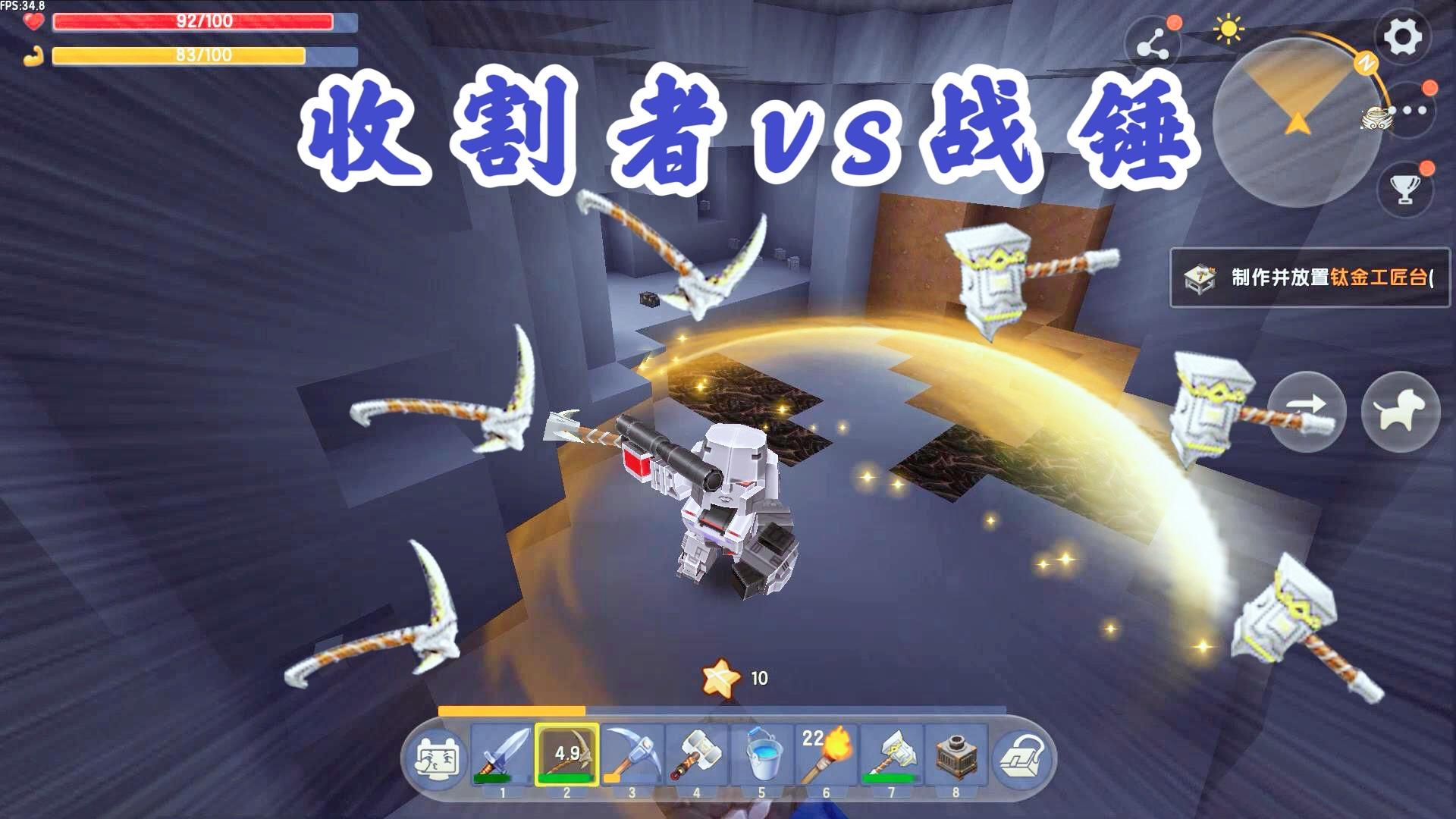迷你世界:探索新世界7,收割者vs钛金战锤,小师弟回到地面