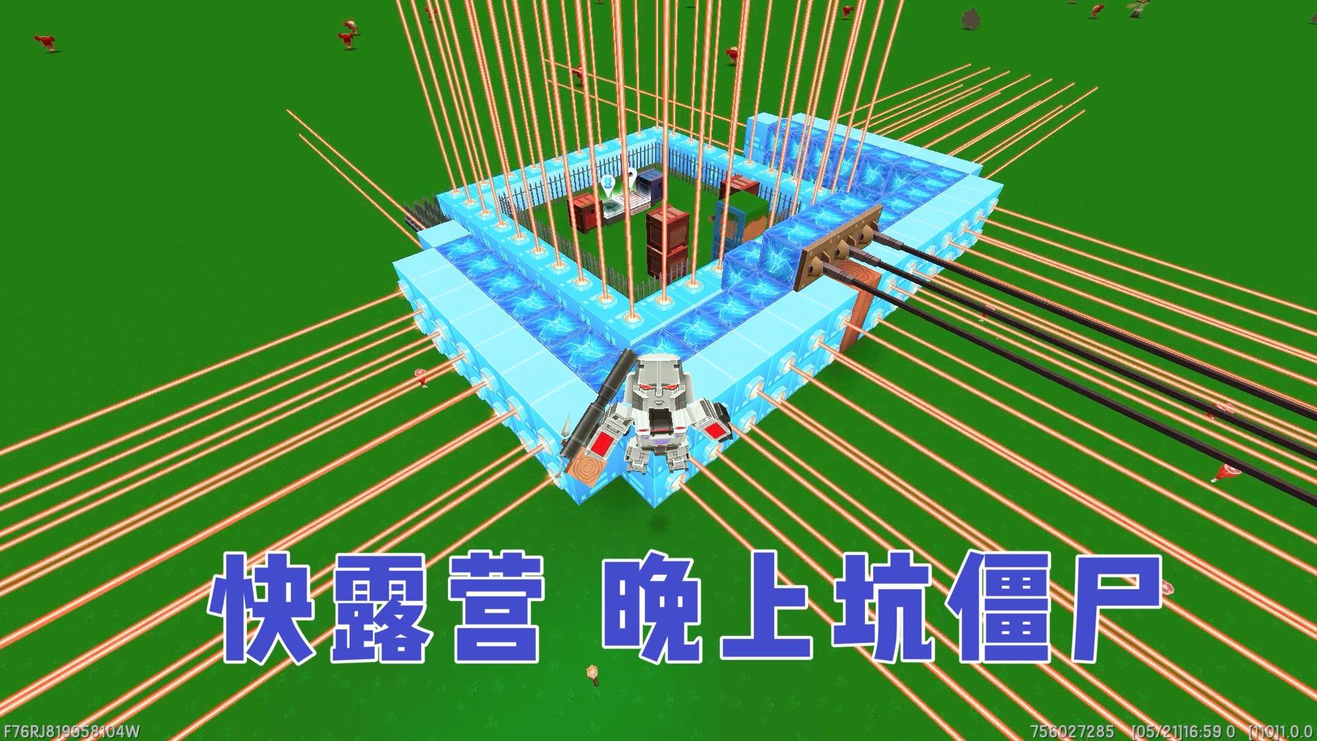 迷你世界:晚上露营坑僵尸怪物,激光网防御墙很厉害,天下无敌