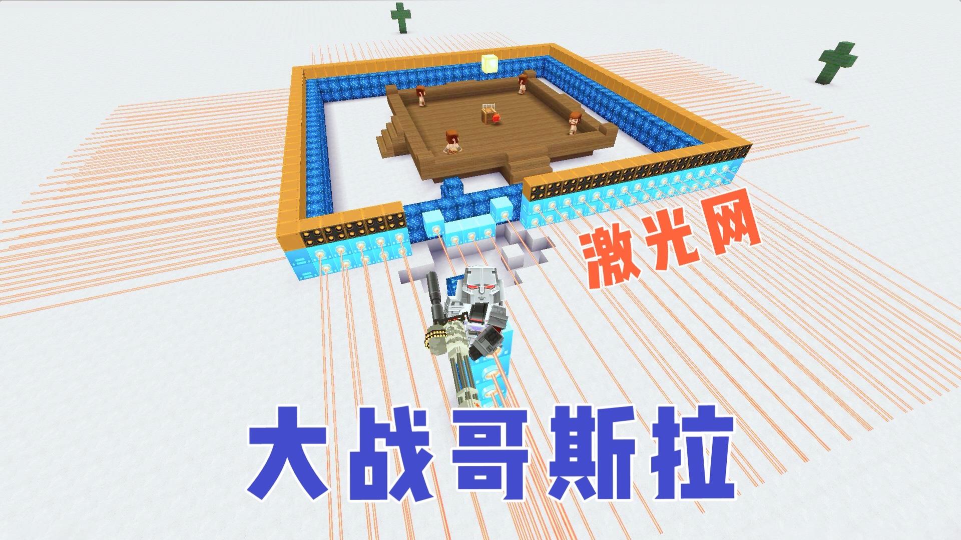 迷你世界:晚上有大量哥斯拉来袭击,做好激光网,就可以天下无敌