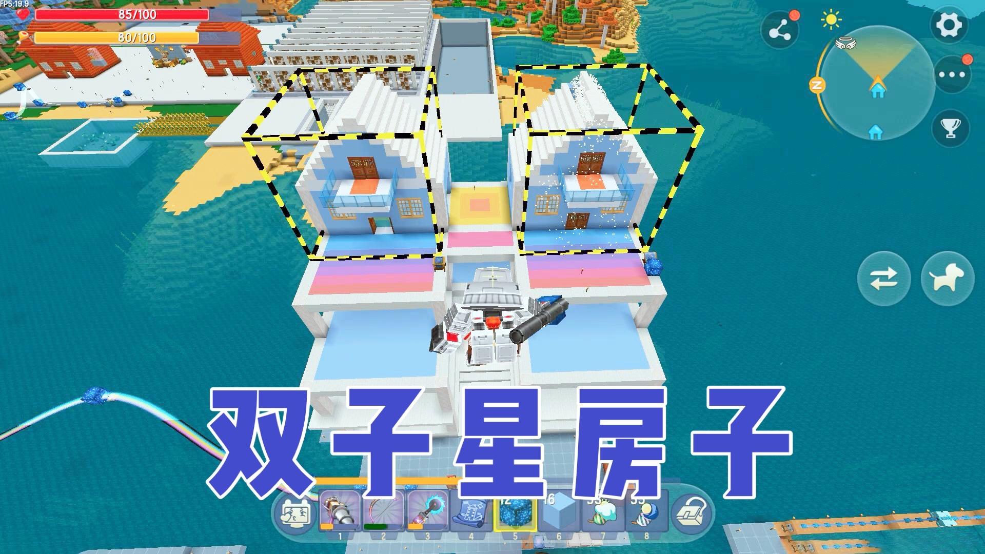 迷你世界:单人荒野生存第177期,蓝图有效率,双子星房子搞定了