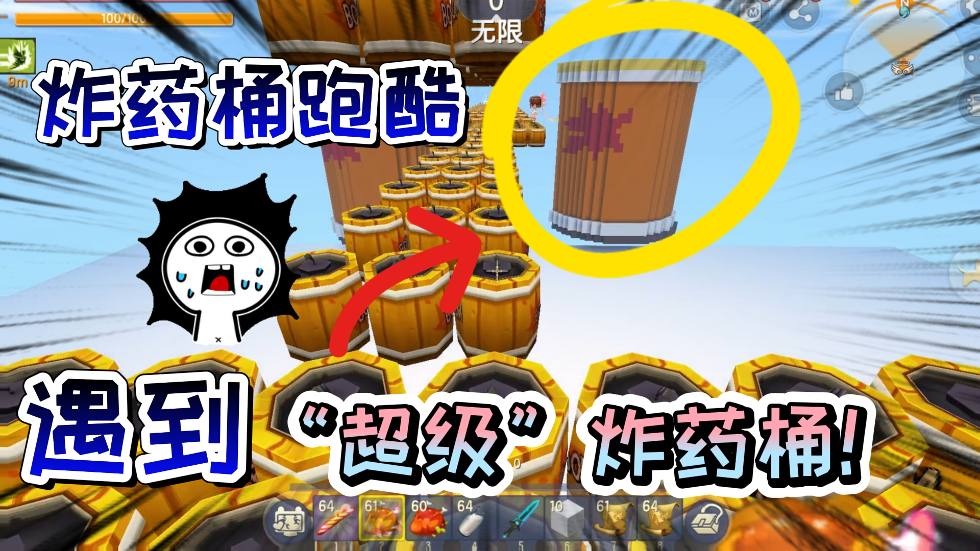 迷你世界:炸药桶跑酷,终点有超大炸药桶,还隐藏着秘密武器