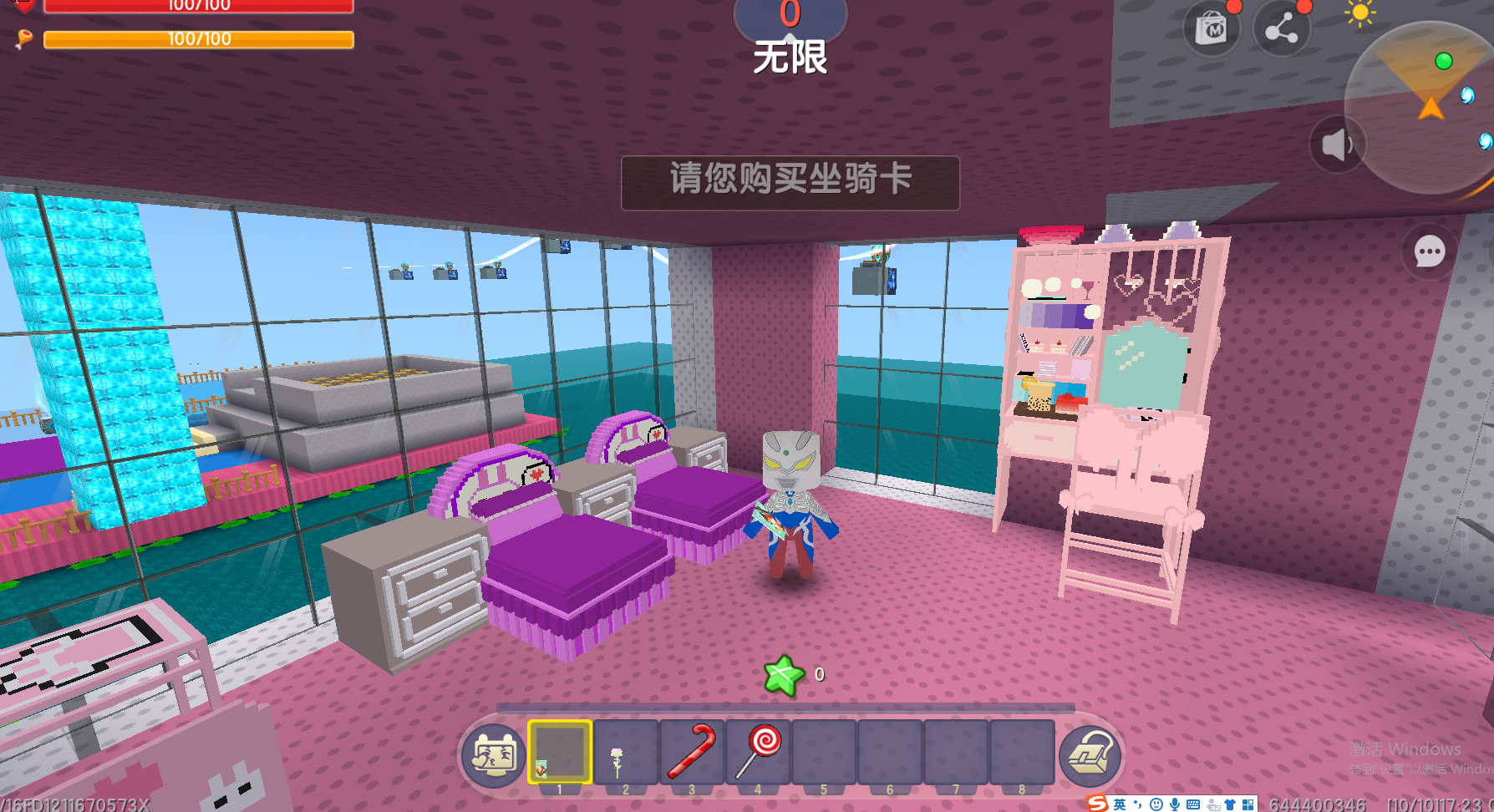 迷你世界:房子里面的紫色小床小夕太喜欢了,把房子都参观完了