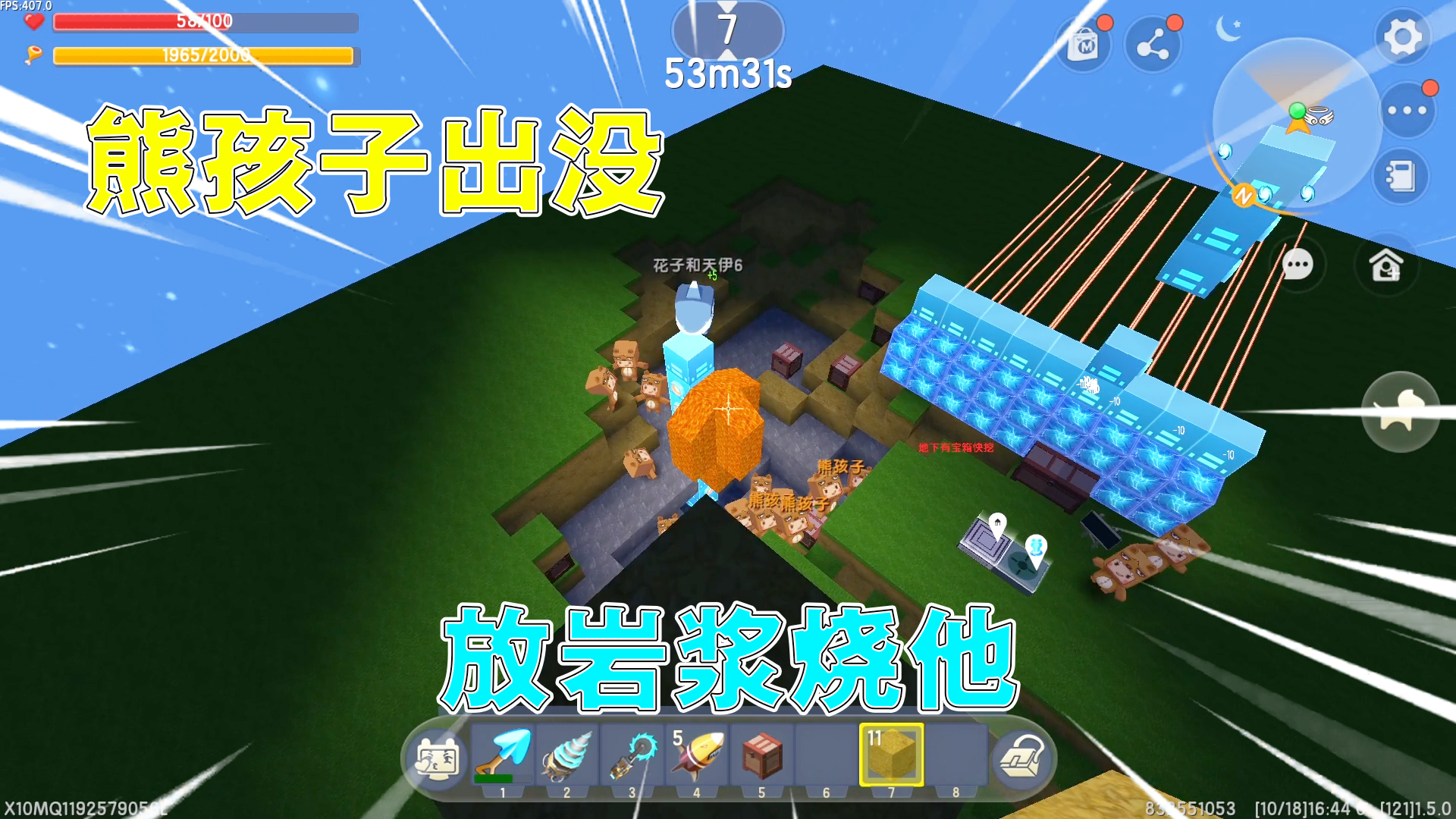 迷你世界:晚上有熊孩子出没!兄妹俩打不过,站在高处倒岩浆!