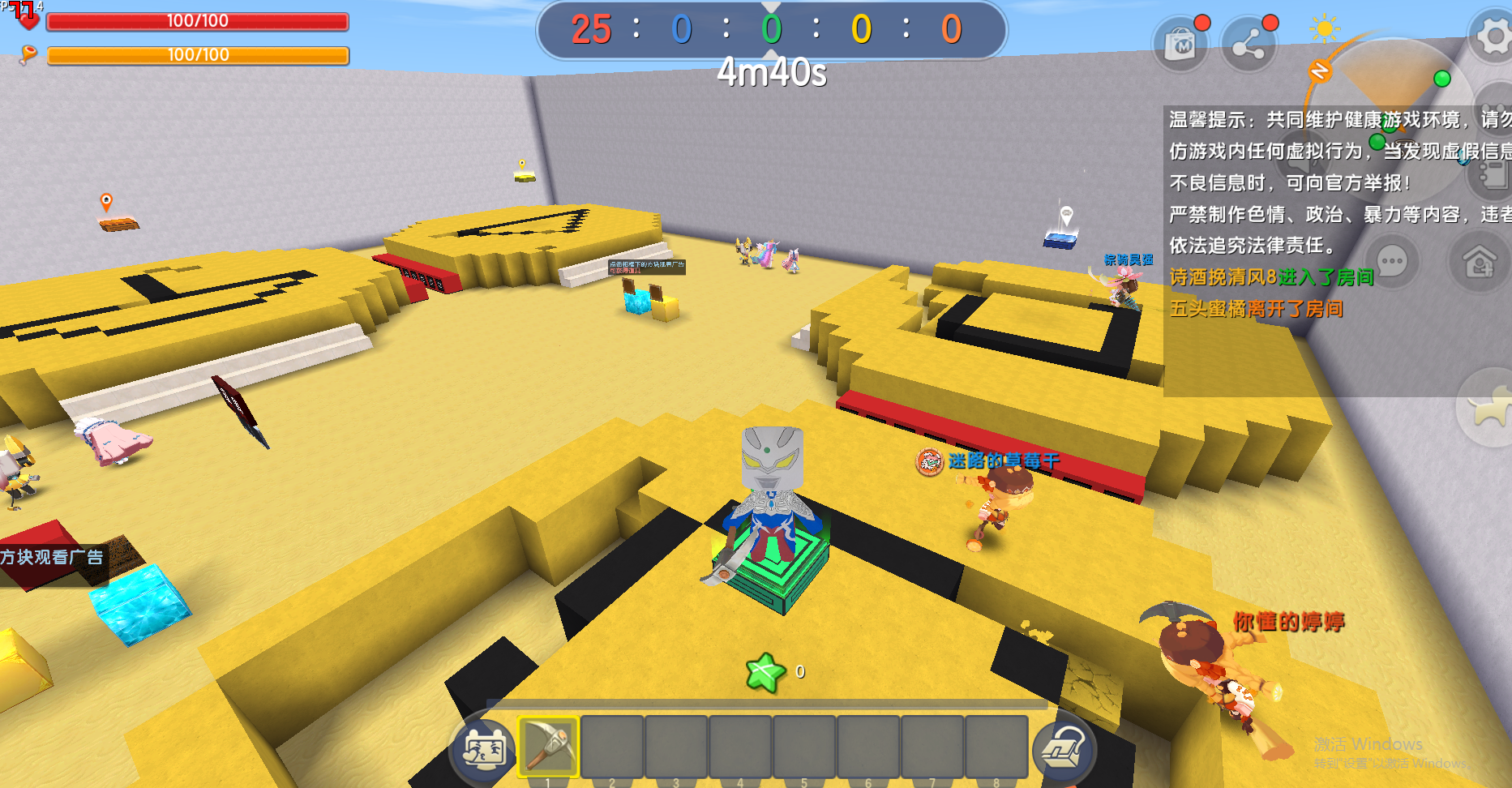 迷你世界:弓箭大战积攒怒气开启暴走模式,可是这地图太卡了
