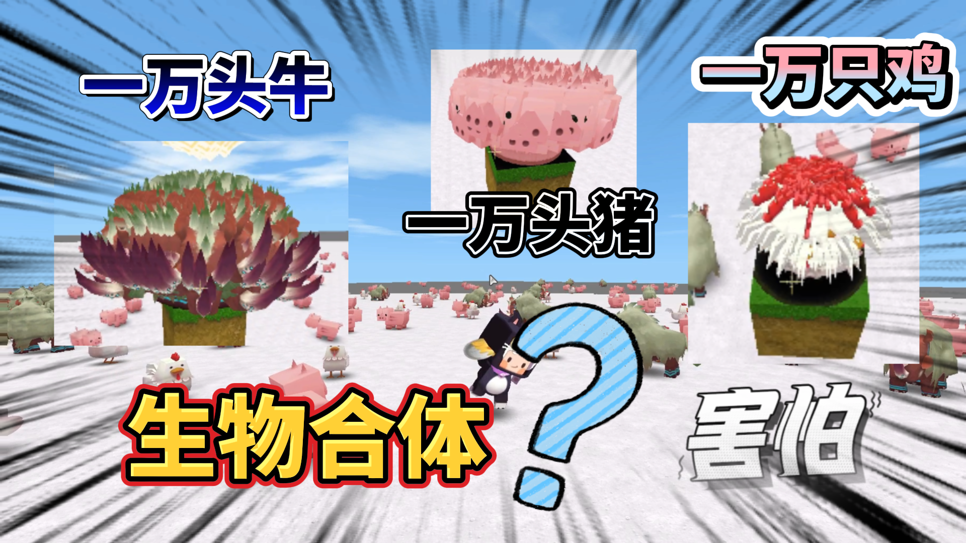 迷你世界:一万头牛和一万只鸡,站在一块方块上,牛的样子好奇怪