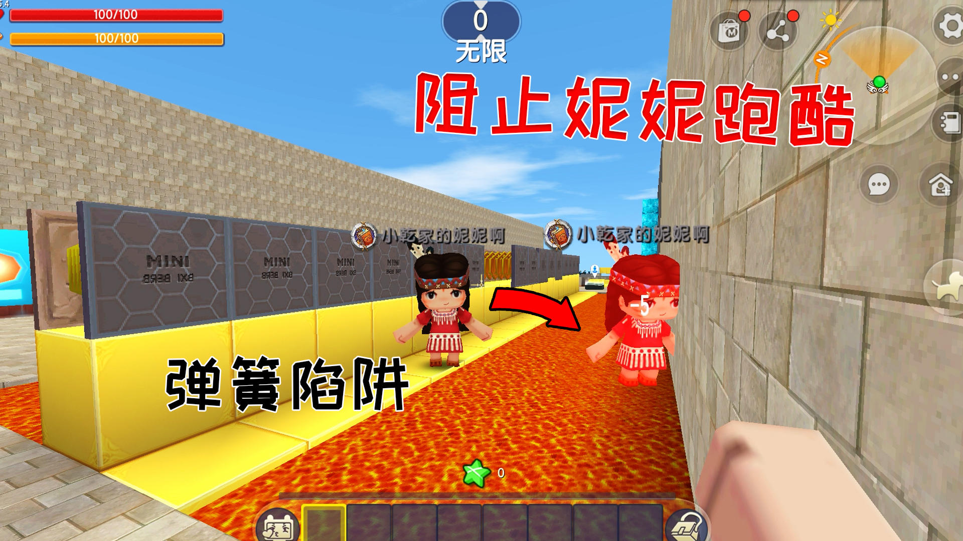 迷你世界:小表弟利用陷阱,阻止妮妮跑酷,失败就会被沙尘暴吞噬