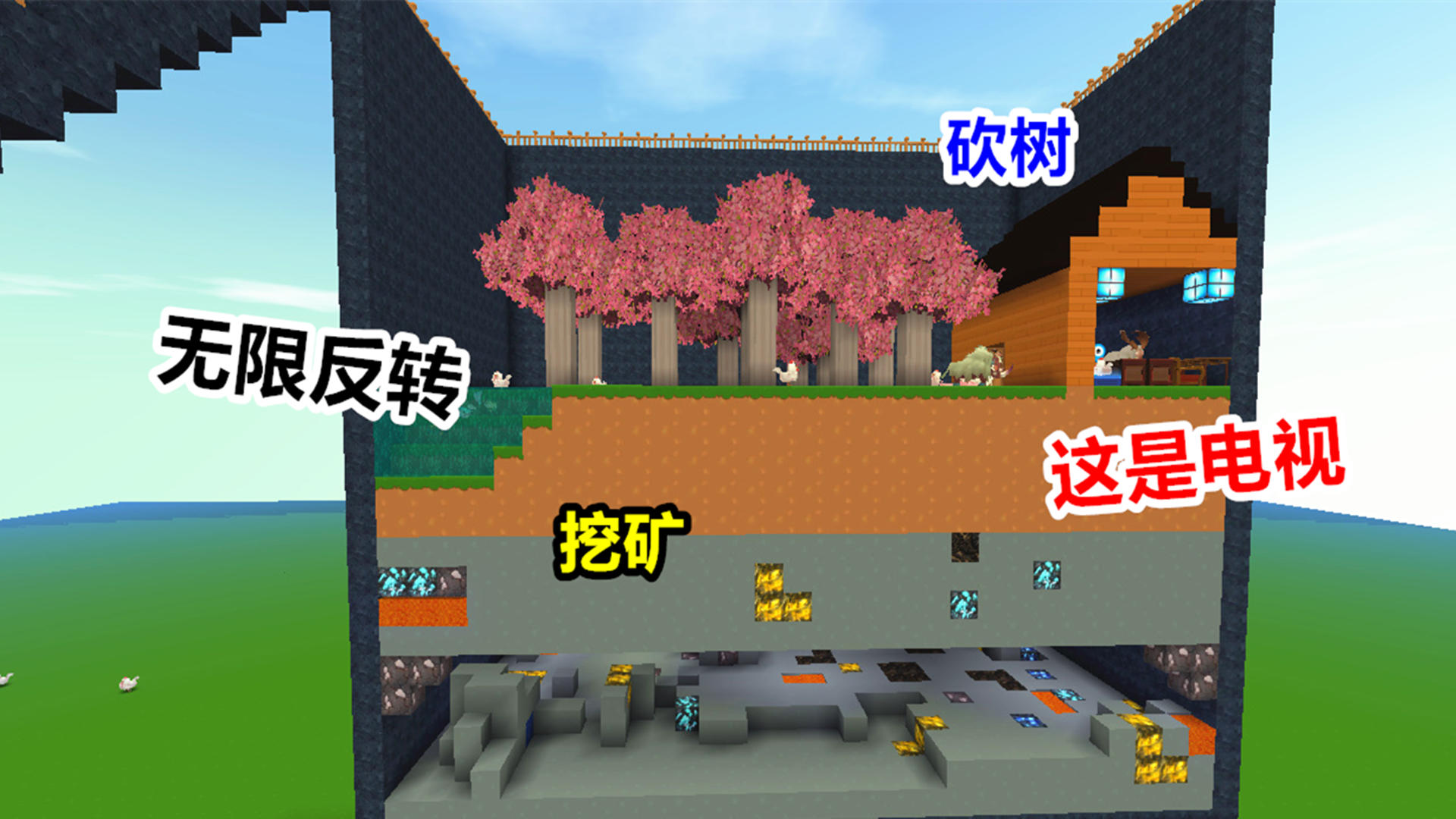 迷你世界:你以为我在挖矿,其实我在看电视,无限反转之你以为