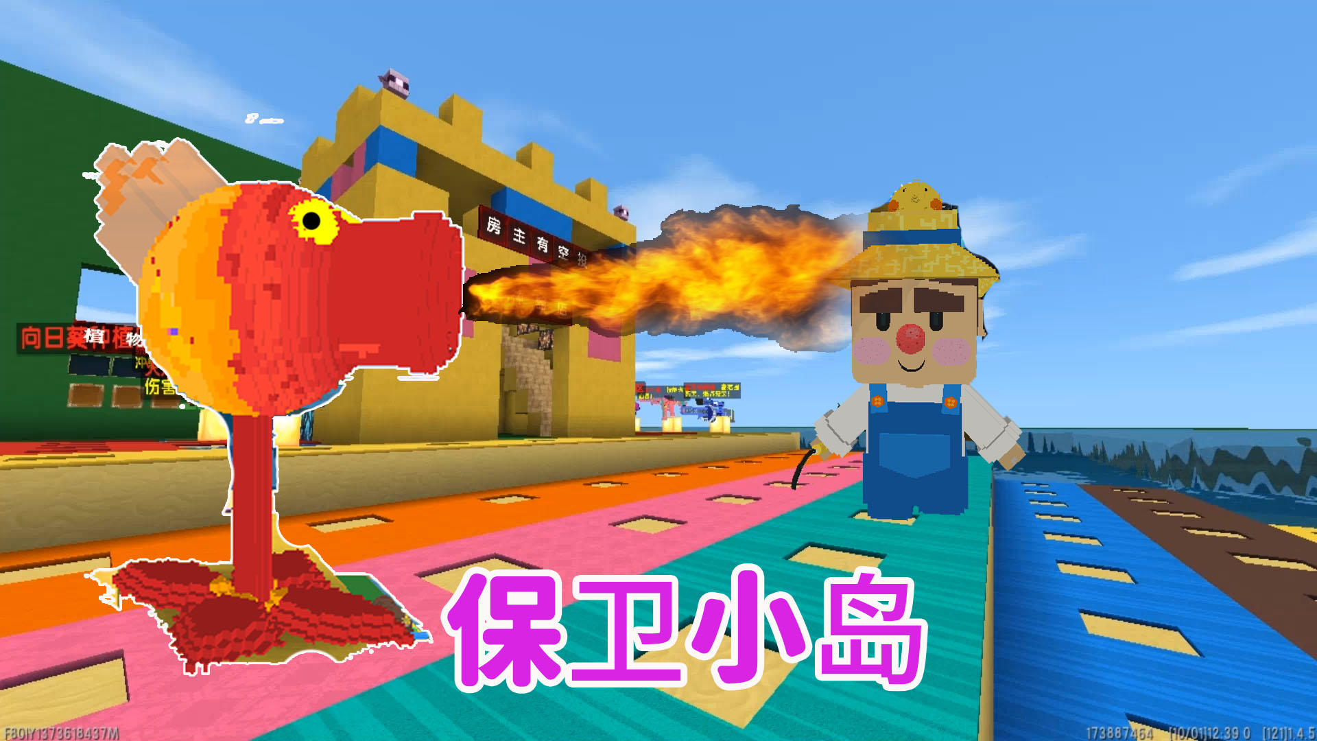 迷你世界:植物大战僵尸 保卫小岛 吐火豌豆 张嘴就要喷火