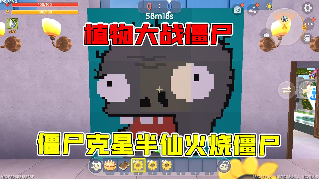 迷你世界:植物大战僵尸,僵尸克星半仙火烧僵尸,僵尸表示太无情!