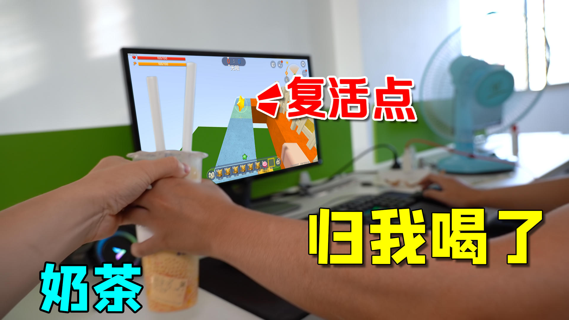 迷你世界:奶茶跑酷,谁先跑到下一个复活点,谁就可以喝一口奶茶