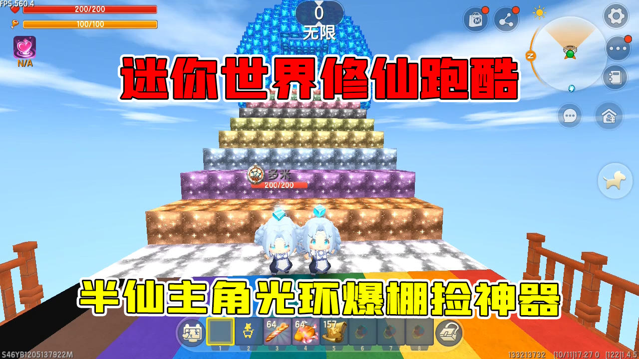 迷你世界:修仙跑酷,半仙主角光环爆棚捡到神器,多米羡慕嫉妒恨!