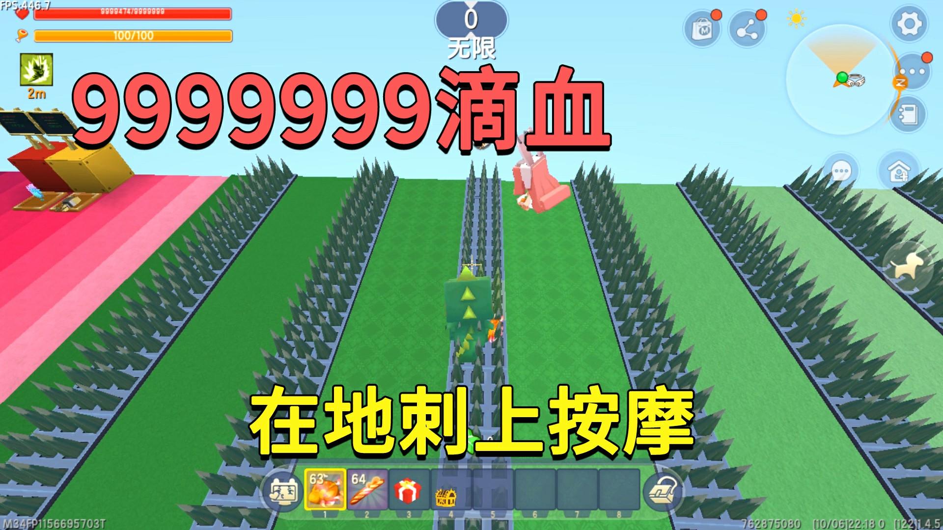 迷你世界:9999999滴血跑酷,小迷在地刺上按摩,在岩浆里游泳