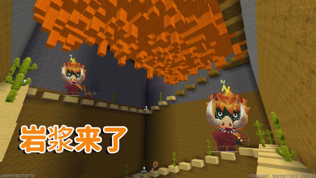迷你世界:岩浆下降 快点跑小心路上的野人 跑进深渊底部获得胜利