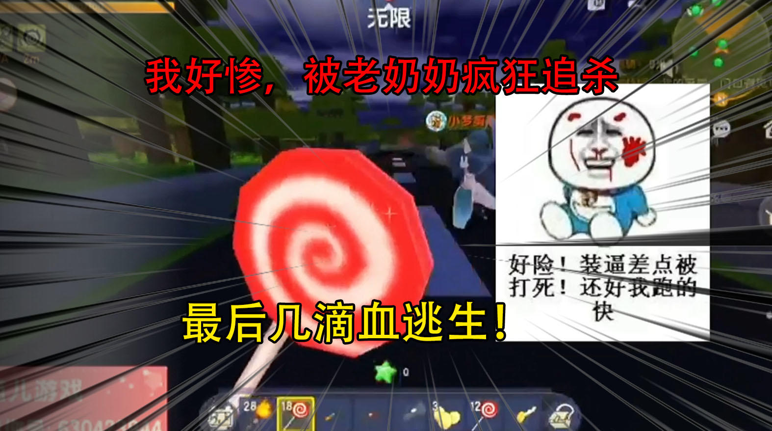 迷你世界:我好惨,被老奶奶疯狂追杀,最后几滴血逃生!