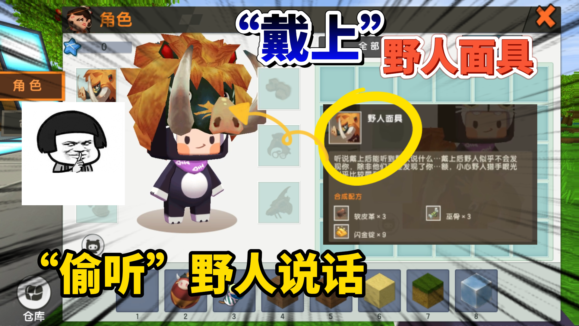 迷你世界-带上野人面具,我听到野人说话了,他说“我要吃了你”
