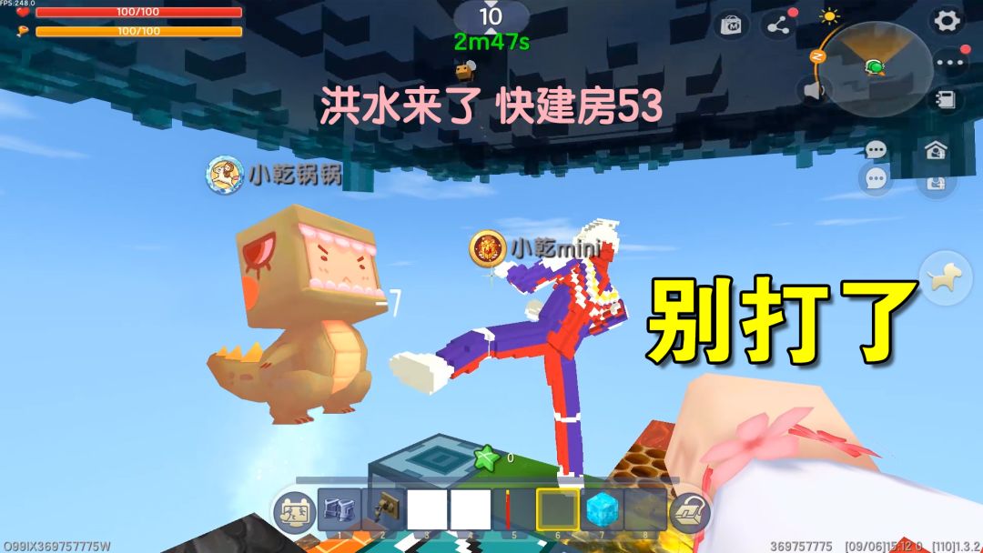 迷你世界:小乾小表弟你们别打了,洪水还有53秒就来了,快建房子