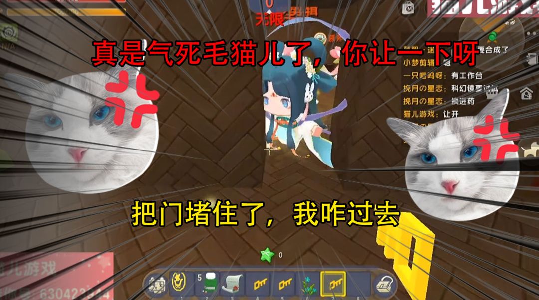 迷你世界:真是气死毛猫儿了,你让一下呀,把门堵住了,我咋过去