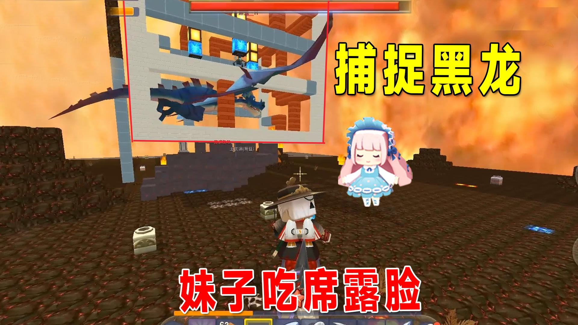 迷你世界联动生存8:我们去烈焰星抓捕黑龙,虎妹子吃席露脸了