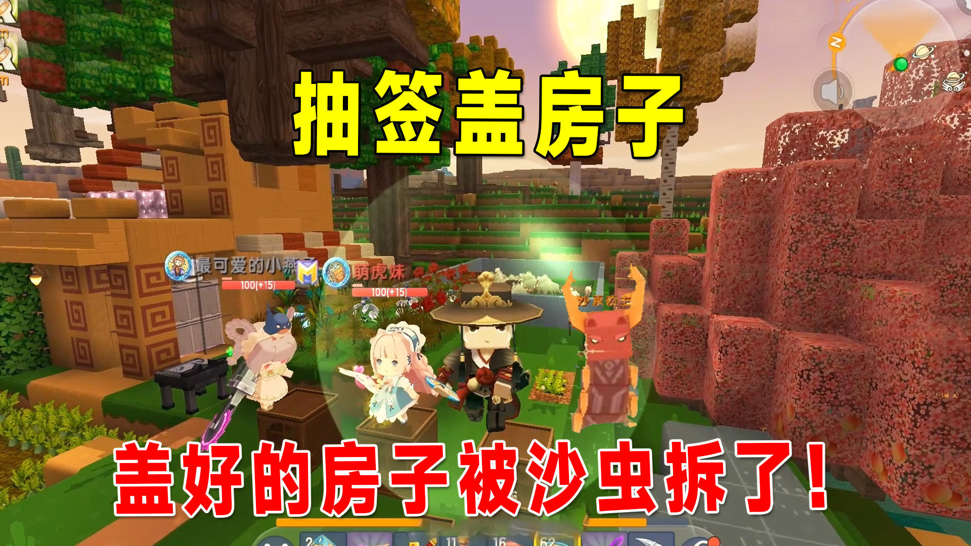 迷你世界沙漠生存25:沙虫拆了我的房子,还送了3个沙虫炮给我们