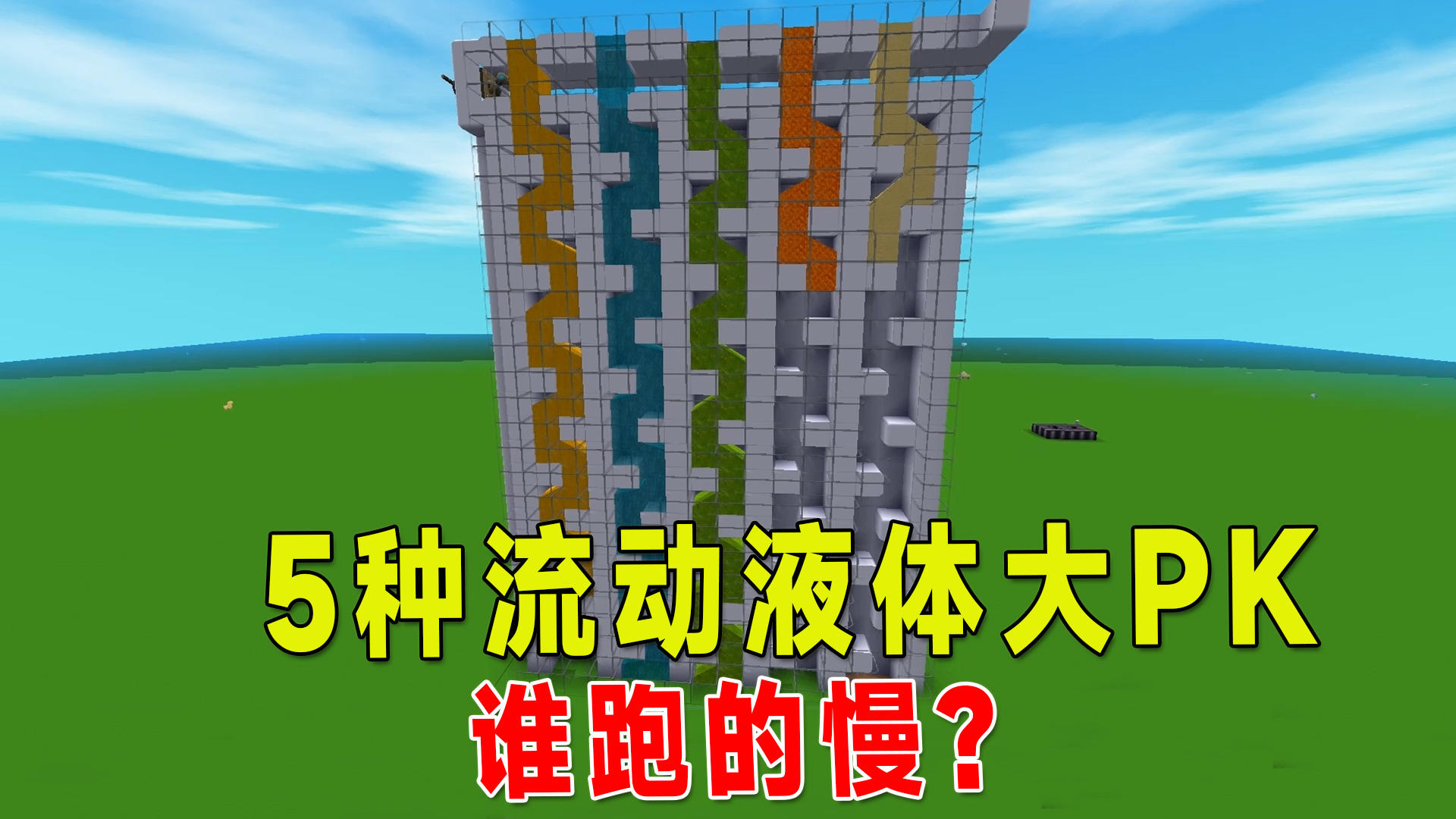 迷你世界:5种流动液体大PK,跑的最慢的是哪一个,你猜对了吗?