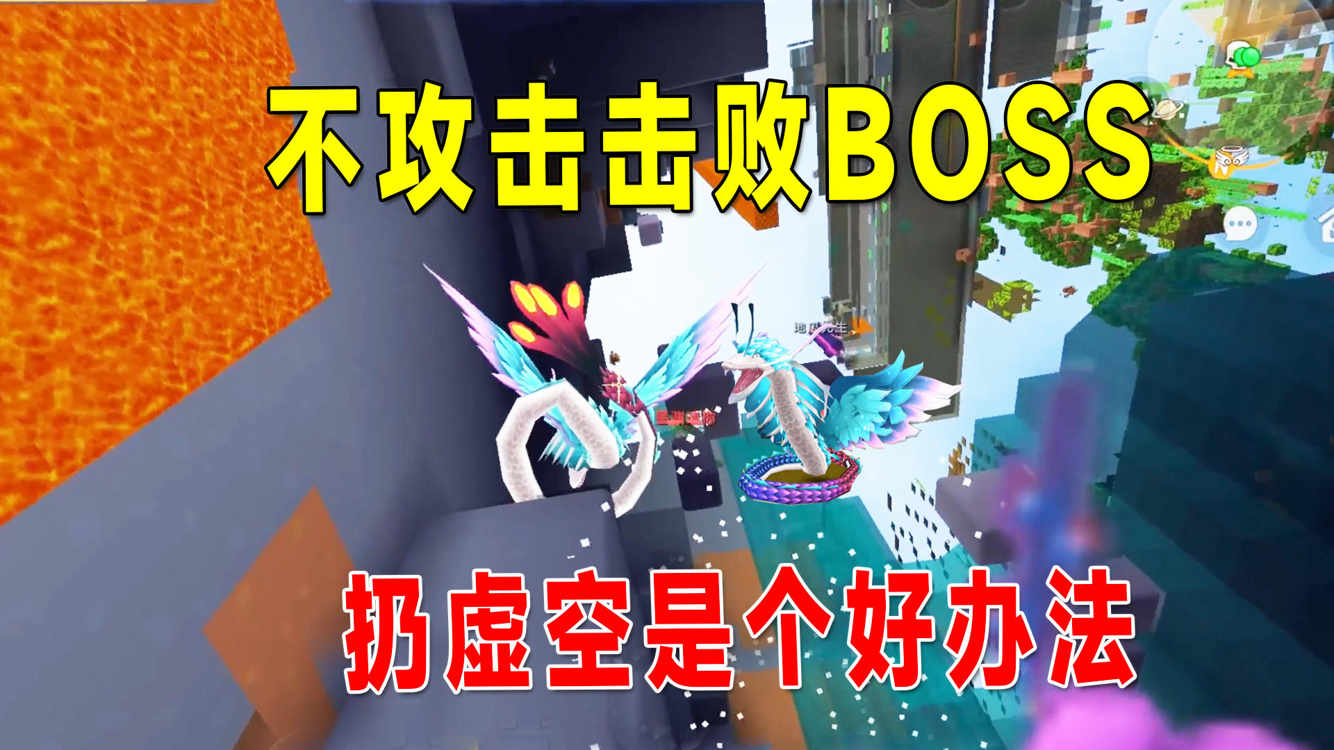 迷你世界:不能前行生存,向前有大坑只能倒着走,boss被扔进虚空