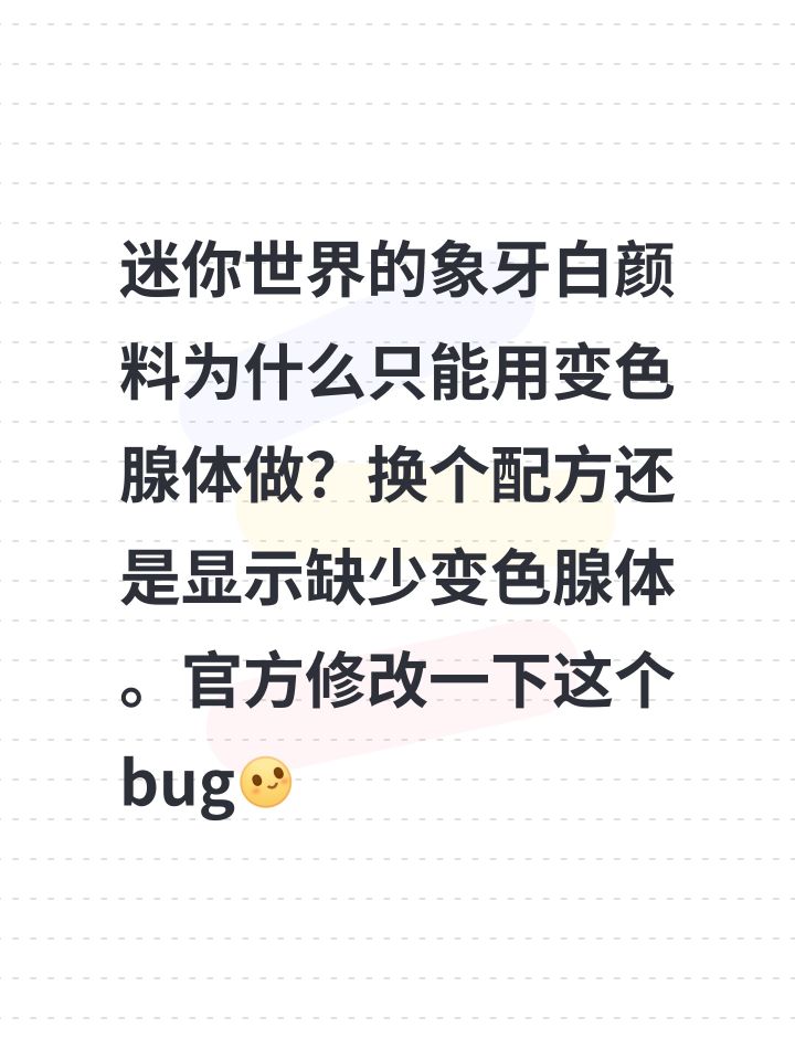 迷你世界的象牙白颜料为什么只能用变色腺体做?换个配方还是显示缺少变色腺体。官方修改一下这个bug