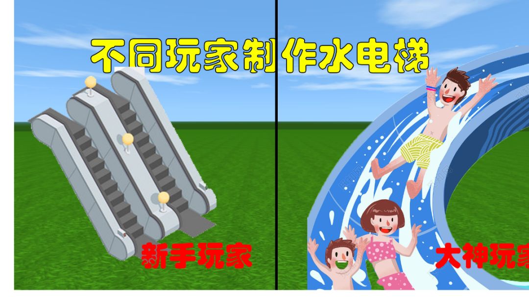 迷你世界:不同玩家制作水电梯,新手你直接退游吧