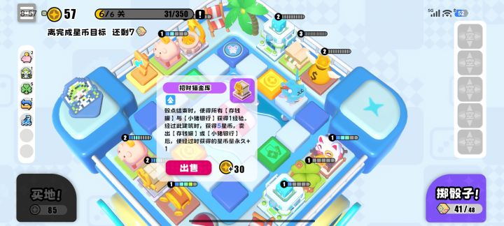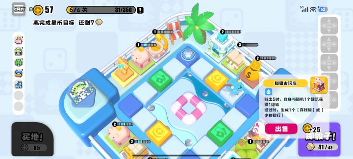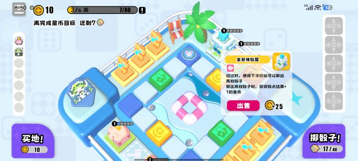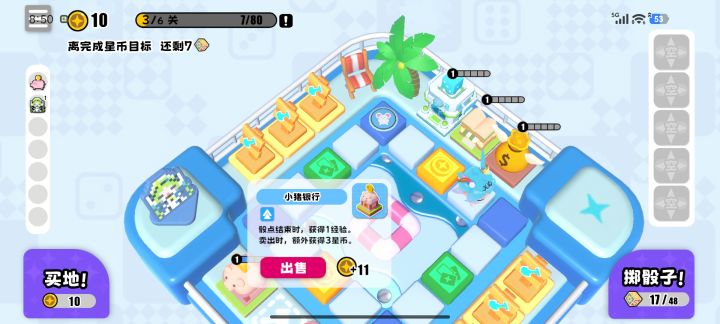 玩了4局都通关了,并且经常错过买东西,忘记盖房子(容错率还挺高)开局有两侧空地可以直接盖哦(包括我在内很多人一开始都没注意到)就是开局先都放下,等到最后一次骰子全卖。卖完有猪养猪,没猪就刷一次。别忘记最后一骰前不够可以合成升星再卖。盖房子:开始养猪之后就2级卖,每次回到初始点刷一轮看有余裕之后可以升三注意买1.全息屋(经过后可以一次投两颗骰子),第一个建议盖在初始点刚