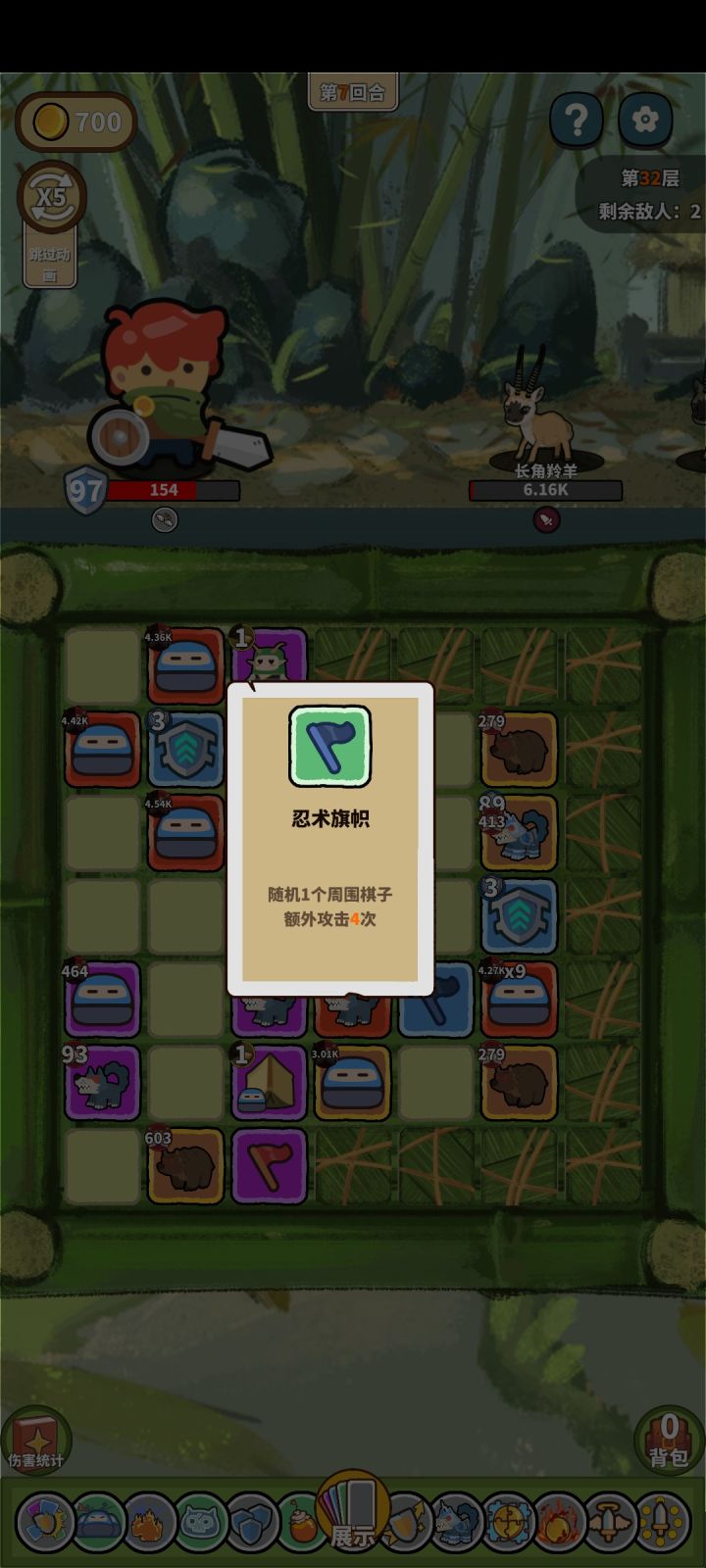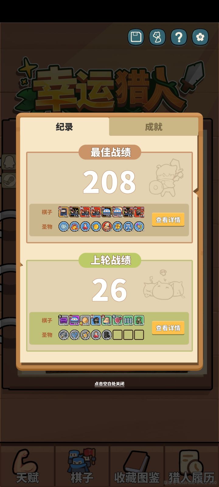从作者那里学来的bug级打法。胖瘦组合。要求:一个满级胖子营地和一个满级忍者营地。时刻控制自己输出尽可能一直多拖回合。圣物在战斗内点是否禁用也是能立即生效的。因为胖子特有的减攻高防机制特别适合拖回合,而怪战斗力低和你战斗力有一定关系,多拖回合逐步解放才能走的更远。然后这个进阶胖瘦组合bug就在有胖子的攻击,忍者的次数,其他进阶棋子就都只是省个格子那样的作用。