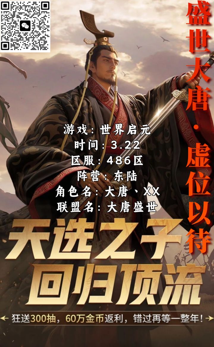 备战回归服时间:3.23上线阵营:北洋大陆角色名:FR丶XX联盟名:小飞兔落地奖励:落地带马甲送首冲,还有开荒排行,战功奖励#要玩的可以私聊我