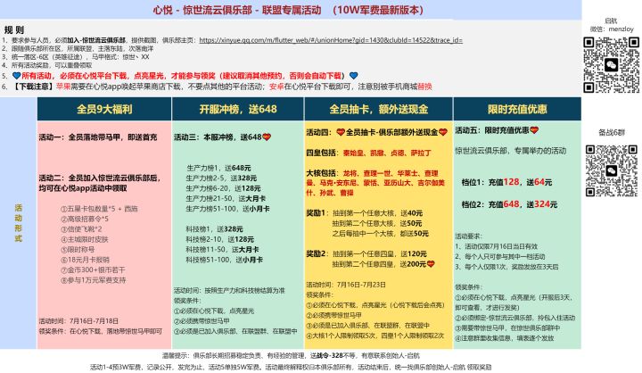 充值128,报销64元 充值648,报销送324元最新军费活动仅限其中一个,1人1次惊世流云氪佬团妹子队等你加入十万军费等你来拿