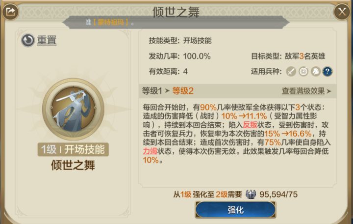 首充一套指所有充值档位都来一轮大概率会获得1圣,以及一些T1的英雄和技能,相比平民能够玩出更多花样,战力也进一步增强。感谢内测资深玩家@萧瑟 的分享~Top1:破防队特点:该队伍中织田信长的自带技能由于贞德自带技能的加持,触发次数翻倍,可以3回合内将对面攻击、防御、智力属性降低100多点,专打恺撒肉盾队,如果带了制敌机先也不怕菜刀。较强的属性降低效果,能够直接把对面干破防了,所以叫破防队。木