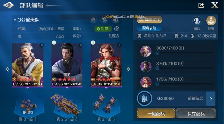 1. 首先地面拆迁器械我们可以组两队,尽量选择攻城成长高的部队,建议换成主力把拆迁队刷到30级既可以。公输班组一队炮车+两个近战墨子可以组一队投石车+两个近战尽量他们都选择攻城值比较高的,或者红度高也可以。然后大家根据自己的需求去选择装配技能可以减少装填弹药的时间2. 空中器械队这里简称为投弹队,投弹队相较于地面器械部队的好处在于没有装填弹药的操作,类似于部队出征,有一定的限制,也减少