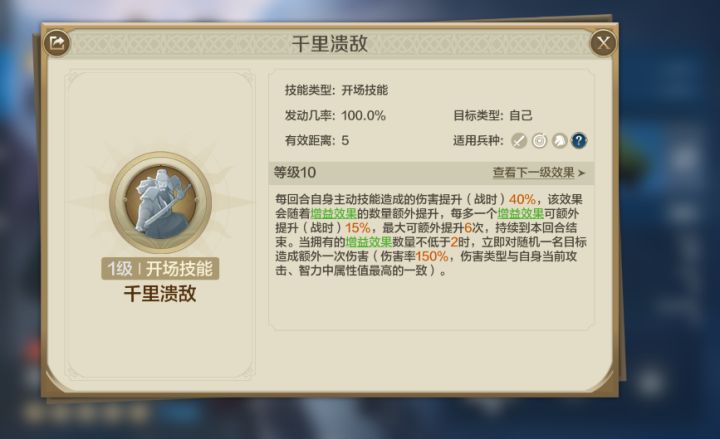 《世界启元》关羽的平民技能关羽是《世界启元》中的一位顶级输出大核,在适当的队友的加持下,他能打出恐怖的爆发输出。他的爆发机制和他的自带技能有关。关羽在受到增益时,他的自带技能会给主动技能增伤,最高能有130%(40%+6*15%)的增幅。具体的技能描述如下: 增益效果一共有以下几种:属性提升、免疫控制、闪避、持续恢复。 这里为平民玩家推荐一些能为关羽增伤的技能,较为常见的动于九