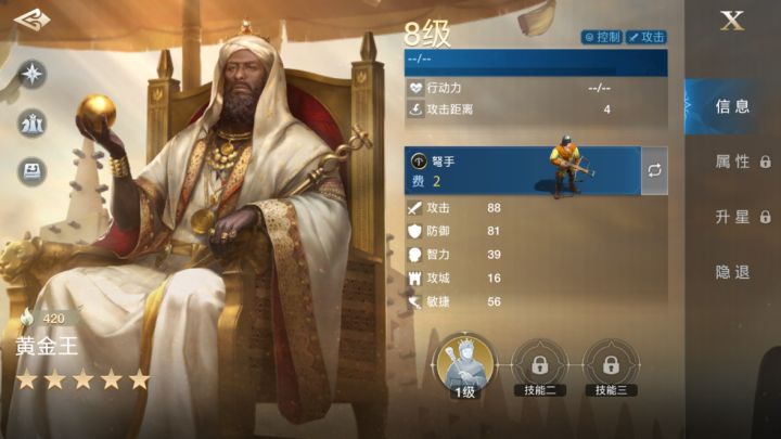 在《世界启元》里,追击输出是一个比较普遍的输出形式。甚至华夏和埃及文明的初始四星队伍都是通过追击技能来输出。游戏里的追击队一直是以雄狮王这种物理追击队为主流,但其实还有许多追击英雄都拥有着不俗的实力。例如今天要给大家介绍的一套阵容:吉加美士追击队首先来看一下吉加美士的基础属性。85的智力和79的攻击,虽然不算特别突出但是也差强人意。85的敏捷在攻击类英雄里算是比较高的,能够在前置位出手。再来