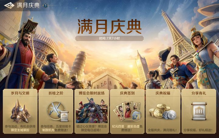 亲爱的开拓者们,《世界启元》公测上线至今接近满月,即将迎来满月之喜。在陪伴各位开拓者的这段日子中,项目组感受到了大家的热情与喜爱,更感激各位的一路相伴!为了庆祝《世界启元》即将到来的满月时刻,项目组精心为大家在游戏内准备了满月庆典活动,永久五星技能、海量金币、高级招募令免费领,纪元四圣英雄四选一,主城皮肤任性拿,还有博览会英雄限时返场等超多福利活动。希望各位开拓者在满月庆典玩的开心,抽到心仪的英