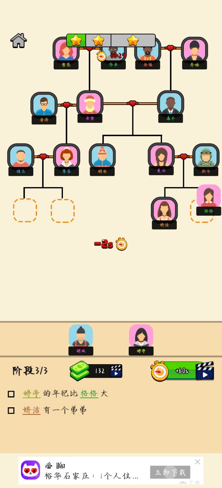 第55关第55关说某个角色只有一个弟弟,试了好几遍,发现其实他有两个弟弟,好明显的bug#游戏讨论