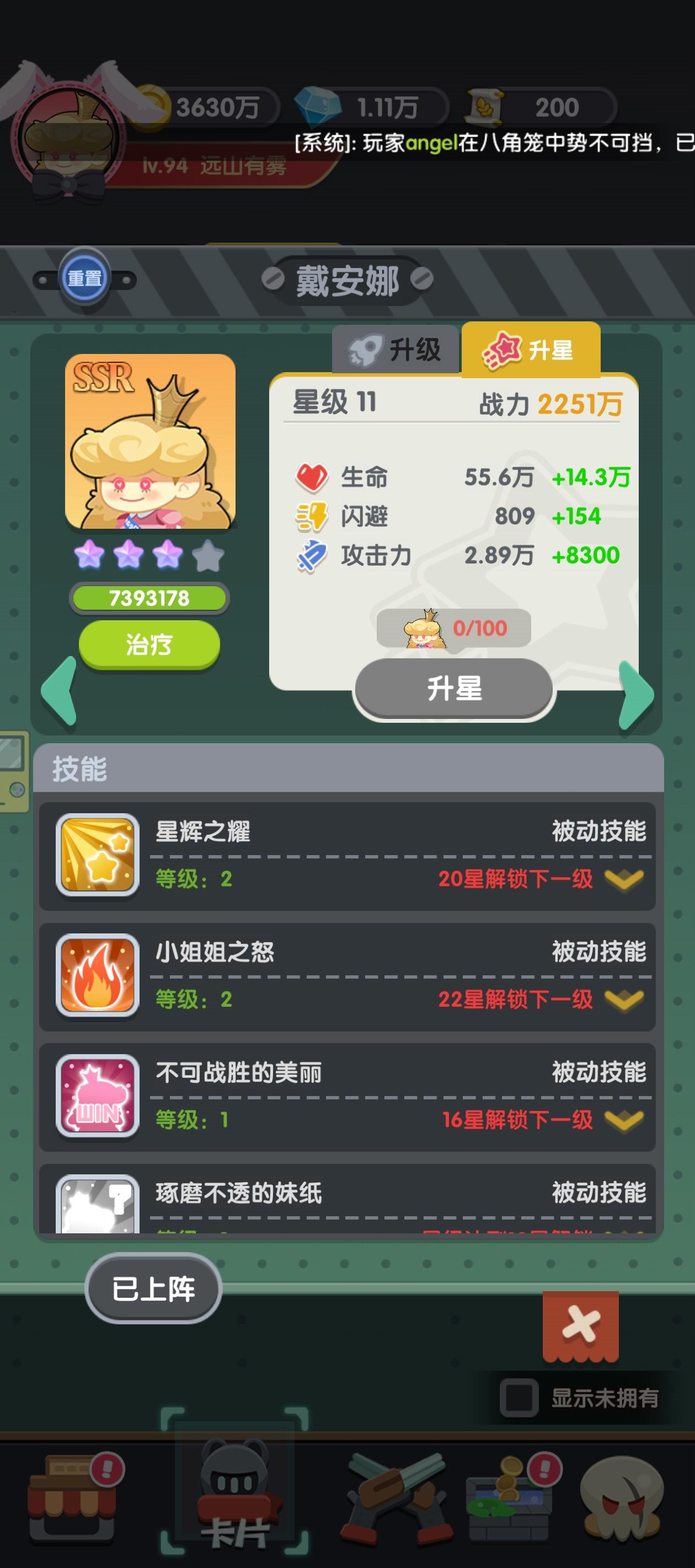 戴安娜确实强.我碰到战力±300万的都不敢打.蜜妮安+300万也敢打.就是资源太难得了